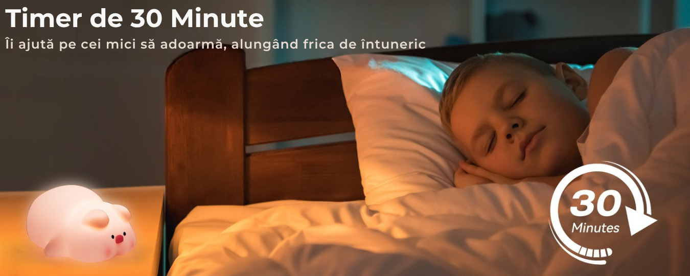 Această lampă din silicon purceluș are temporizator de 30 de minute, oprindu-se automat pentru a economisi energie. Lumină blândă, design drăguț roz de purceluș – ideal pentru camerele copiilor.